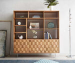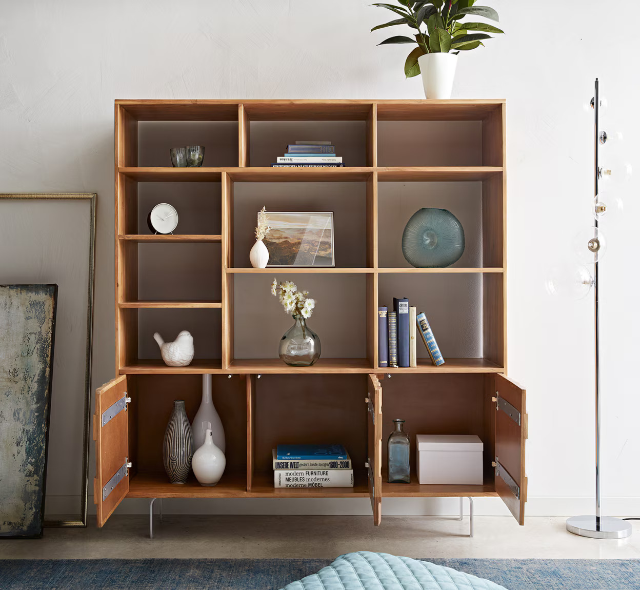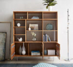 Étagère Fevo 147×150 cm Acacia naturel 3 portes Pied en L