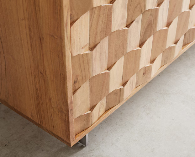 Le bois d’acacia naturel brille dans une teinte chaude et séduit par ses veines uniques. L’étagère ouverte offre suffisamment de place pour vos plus beaux éléments de décoration et cache en même temps d’autres choses dans votre espace de vie derrière 2 portes.