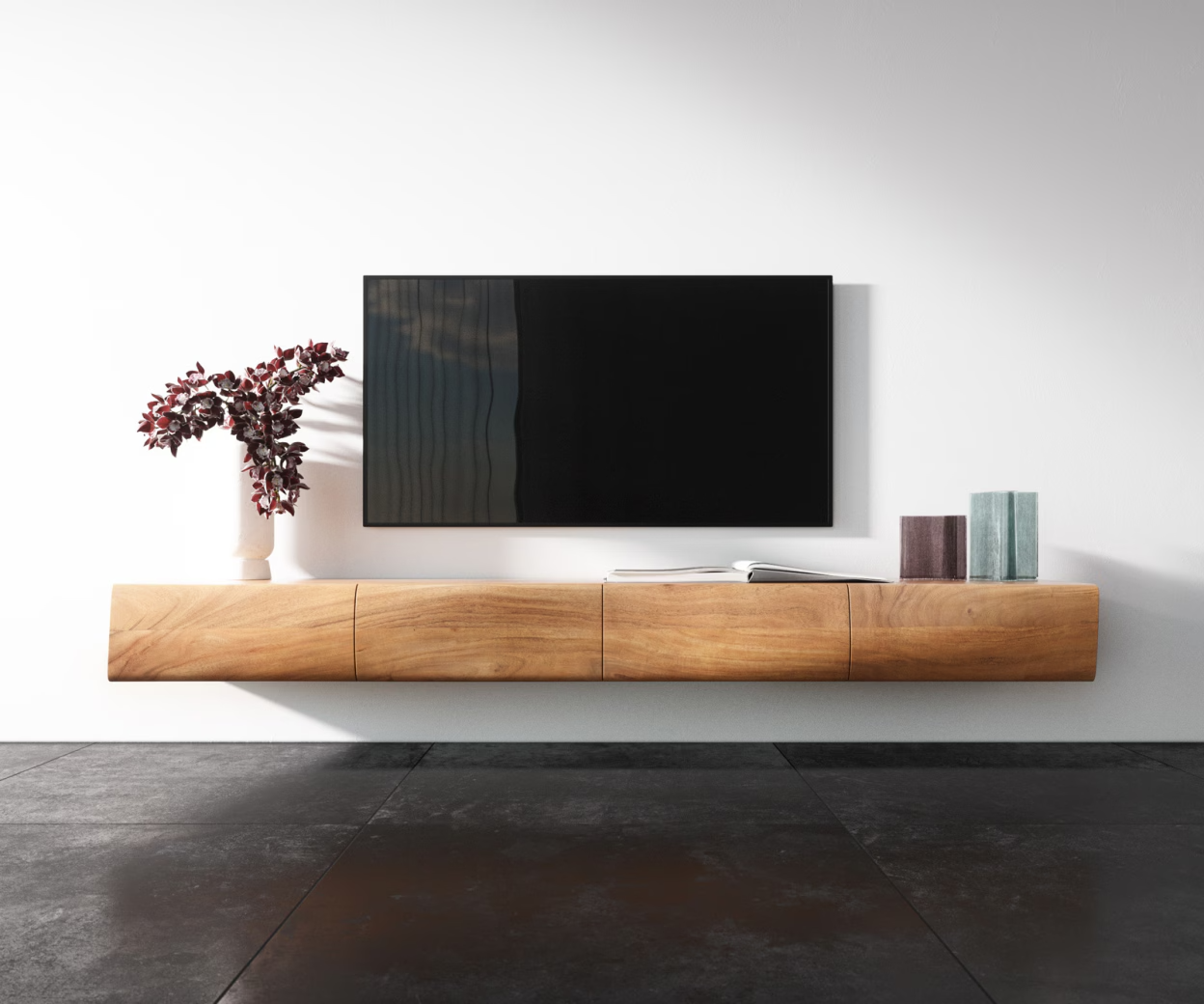 Meuble-TV New Live-Edge200 cm acacia naturel 4 portes flottantes