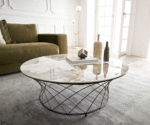 Table-basse Lassina100×100 cm Céramique Minas Melange Blanc-Beige Piétement métal effet titane