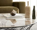 Le piètement filigrane en métal noir revêtu par poudre enlève de manière créative la lourdeur de la table et soutient en même temps l’effet éclatant de beauté du plateau de table. Découvre une toute nouvelle ambiance dans ton salon, où les contraires ne sont pas incompatibles