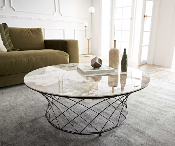 Douceur et force.clair et sombre. Rigueur classique et vivacité ludique – la table basse Lassina réunit à merveille des contraires apparents dans un design spectaculaire. Le plateau de table élégamment poli avec une surface lisse, voire douce, brille dans de magnifiques tons de beige et de blanc et a été fabriqué en céramique de qualité supérieure. Avec son éclat magnifique, il rappelle la pierre polie, mais il est si facile à entretenir et si solide qu’il te ravira chaque jour.