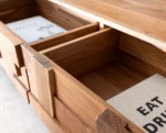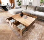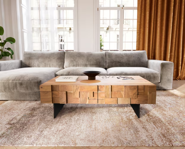 Soyez le premier à laisser votre avis sur “Table-basse Puzzle 120 cm 4 tiroirs acacia naturel pied flottant métal noir”