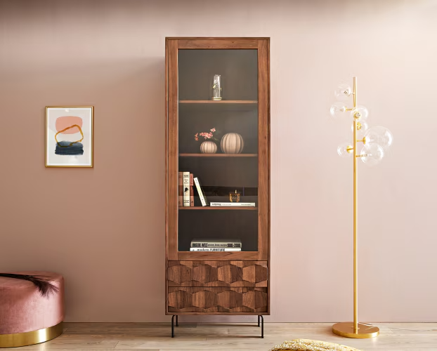 Vitrine Fevo 60×180 cm acacia marron L-Fuß