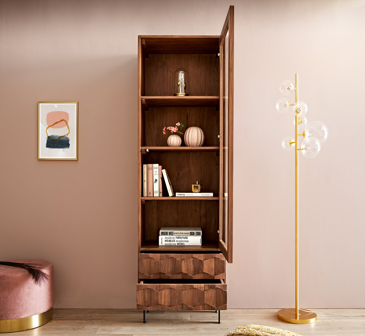 Vitrine, colonne, et bonnetière